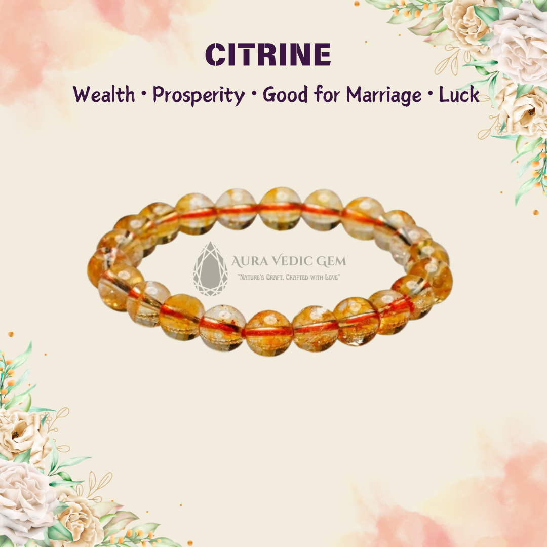 Wear our Natural Citrine Bracelet for Wealth and Harmonious Marriage. It is renowned as the ultimate stone of manifestation, abundance, and joy. Unlike many stones that require cleansing, Citrine uniquely carries the energy of the sun, radiating pure, self-cleansing, positive light.