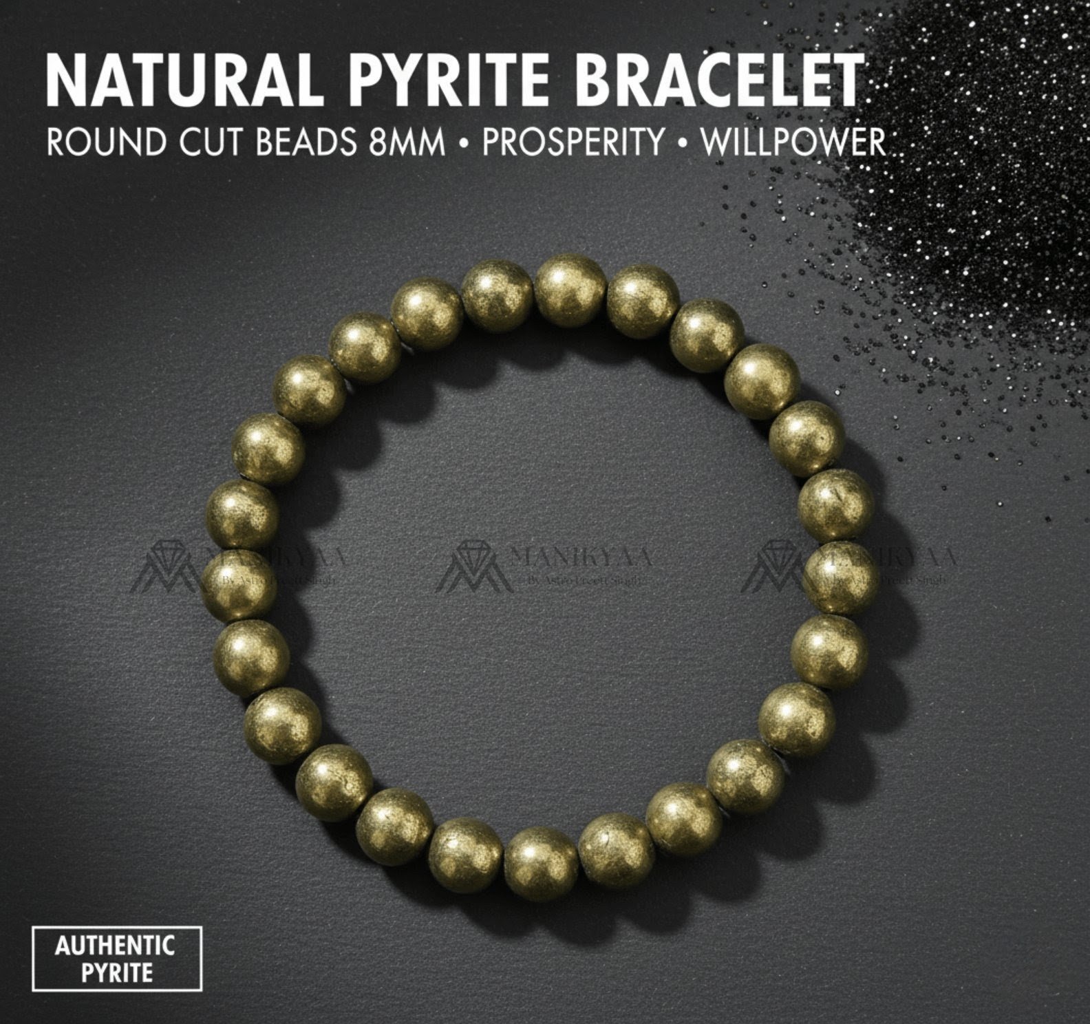 Pyrite’s radiant golden energy works like a shield against negativity and self-doubt. It empowers you to stay optimistic, grounded, and focused on your goals. In many traditions, Pyrite is considered a stone of good fortune, believed to draw luck, success, and opportunities from unexpected places. Wearing it daily may help turn challenges into stepping stones toward success. Natural Pyrite Bracelet for Wealth and Luxury. The Money Magnet Stone by Manikyaa.